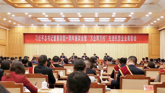 2019年10月17日第六个国家扶贫日到来之际,全国工商联、国务院扶贫办在京联合举办“习近平总书记重要回信一周年座谈会暨“万企帮万村”先进民营企业表彰会”。